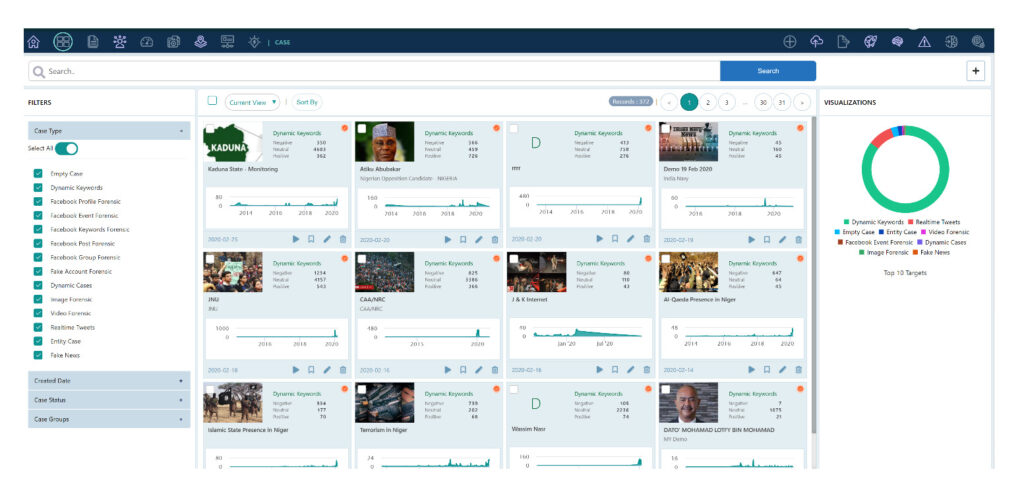 Le ciblage d’activistes peut se faire encore plus précis. Une capture d’écran semble indiquer l’intérêt d’un client indien à acquérir cet outil pour surveiller la protestation sur les réseaux sociaux. Parmi près d’une douzaine d’études de cas datant de février 2020, se trouvent des exemples où l’outil a été utilisé pour analyser des « mots-clés dynamiques » liés aux manifestations d’étudiants en 2020 contre la loi indienne sur la citoyenneté et semble-t-il, aux coupures d’internet dans l’État du Jammu-et-Cachemire.