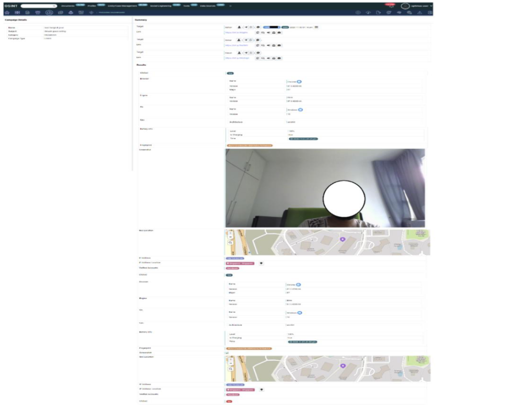 Cette société, qui se présente comme une entreprise de renseignement en sources ouvertes (OSINT) prétend dans sa brochure disposer d’outils qui vont au-delà même de l’OSINT dans son sens le plus strict ; une récolte d’informations publiques accessibles à tous. Parmi les produits qu’elle propose : un outil d’hameçonnage automatisé pour installer à distance des logiciels malveillants, ou encore d’énormes bases de données publicitaires permettant de suivre des cibles déterminées, et la possibilité de créer aisément des campagnes d’influence à l’aide de faux comptes.