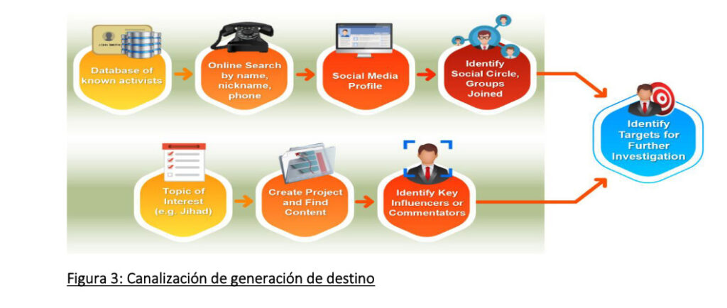 Dans une lettre de présentation adressée aux services de renseignement militaires colombiens, S2T fait la promotion de ses outils OSINT pour aider à lutter contre les groupes « malveillants », notamment : « les terroristes, les cybercriminels » et, plus surprenant, « les activistes anti-gouvernementaux ». Les utilisateurs de l’outil peuvent, par exemple, « identifier des cibles pour une enquête plus approfondie » à partir d’une « base de données d’activistes connus. »