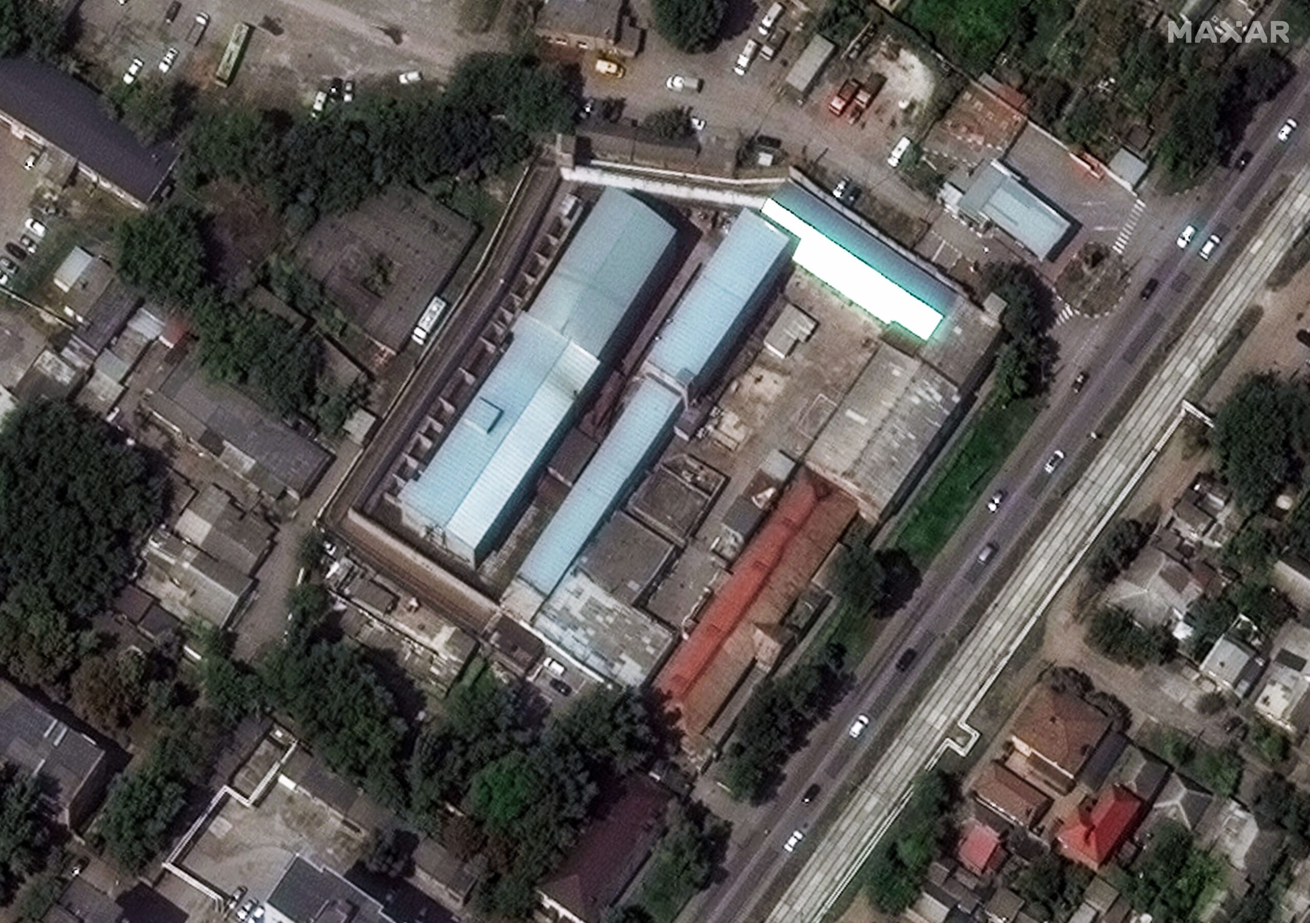 Forbidden Stories et ses partenaires ont analysé des images satellites pour saisir la transformation de Taganrog en « Guantanamo russe ». Ces clichés obtenus par le consortium révèlent ainsi la pose de nouveaux toits en métal pour plusieurs bâtiments du SIZO-2 au moment de l’arrivée des premiers prisonniers ukrainiens, 89 combattants du régiment Azov, en mai 2022, après la prise de de Marioupol. Les travaux s’étirent jusqu’à début janvier 2023, selon les clichés consultés.