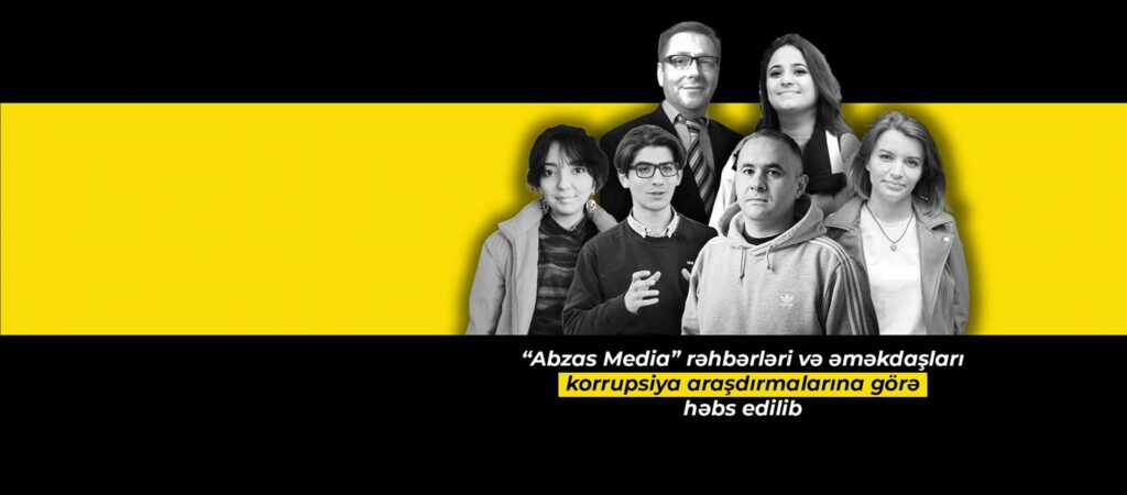 The managers and employees of Abzas Media have been arrested for their investigations into corruption”, the media’s Facebook banner reads. From left to right, it displays the portraits of Elnara Gasimova, Mahammad Kekalov, Hafiz Babali, Ulvi Hasanli, Nargiz Absalamova and Sevinc Vaqifqizi.